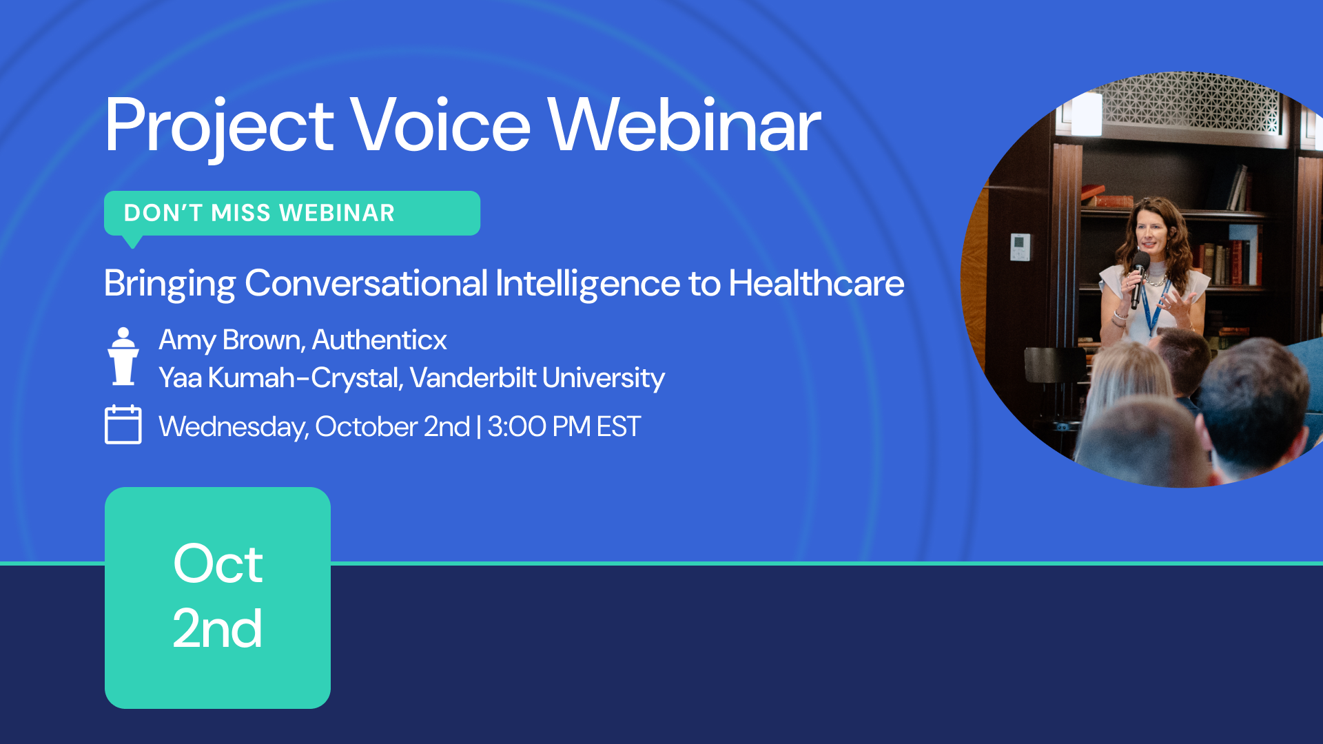 During this engaging session, Authenticx CEO and Founder Amy Brown will join PVCP’s host Bradley Metrock and special guest Yaa Kumah-Crystal, Associate Professor of Biomedical Informatics and Pediatric Endocrinology, to discuss the increasing role of conversational intelligence within modern healthcare contexts.